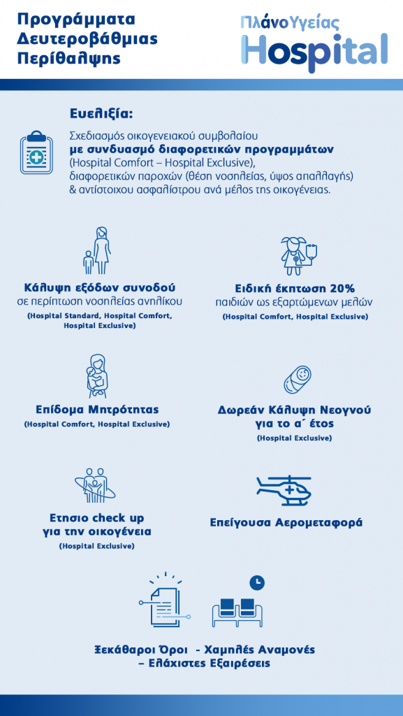 Με ολοκληρωμένες καλύψεις που αγκαλιάζουν όλη την οικογένεια, τη σύγχρονη γυναίκα και τα παιδιά, επιλογές και ευελιξία στη διαμόρφωση ενός οικογενειακού συμβολαίου αλλά και ειδικές οικογενειακές εκπτώσεις, το «Πλάνο Υγείας» της Υδρογείου Ασφαλιστικής γίνεται ο απόλυτος σύμμαχος της οικογένειας για καλύτερη υγεία και ζωή.